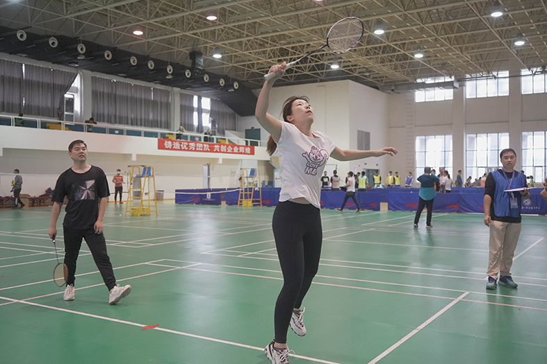 羽毛球賽場上,隊員們盡顯風(fēng)采,揮舞著充滿力量的臂膀,將高遠球、扣殺、劈殺、吊球等各路球技展現(xiàn)的淋漓盡致。在場上,隊員們不畏強敵,賽出了斗志,賽出了水平。揮舞吧,有力的臂膀,向上吧,燃燒的青春!